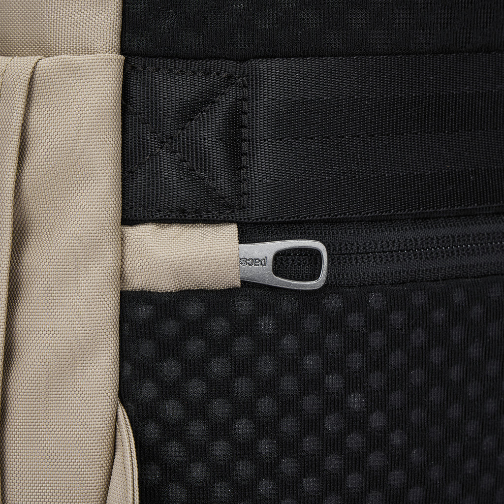 Compact yet highly organized, this 16L anti-theft backpack is designed to securely carry your day trip essentials. It features two lockable compartments, each equipped with internal organization pockets to ensure everything stays neatly arranged. Additionally, the backpack includes a padded laptop sleeve designed to accommodate a 13" MacBook, providing extra protection for your device. For added convenience, the backpack includes a hidden pocket on the back to safely store important items such as your phone, providing easy access whenever needed. It also features a luggage slip, allowing you to securely attach the backpack to the handle of your wheeled luggage.
