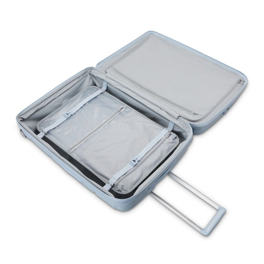 Our instantly-iconic Outline Pro polypropylene collection takes you confidently in the direction of your destination thanks to its elevated design and eye-catching color options. This smart and sleek piece is all systems go – while pulling out all the stops: from its molded trolley handle to easy-lift top and side grips, major touchpoints are treated with Sam-AMH™ technology to help keep hands clean. With integrated extras like a built-in TSA lock and USB port (available in carry-on sizes only), as well as superb-adaptable interior lined in our eco-conscious Recyclex® fabric, this all-time travel essential bridges form and function flawlessly. Bordering on genius. Say it to yourself: You’ve earned this upgrade.
