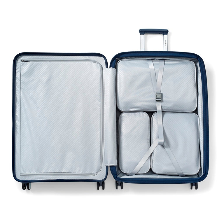 Introducing the Paralux Spinner Large, our first-ever luggage design that features two convenient ways to access your belongings. It opens from the middle like traditional luggage, and also has a front door opening that allows you to fully pack and unpack when floor space is limited. Made from ultra-durable and sustainable materials, the suitcase’s dual access design includes TSA-approved locks to secure the front and center openings. It also comes with three different sizes of removable packing cubes, allowing you to customize how you organize your travel essentials.